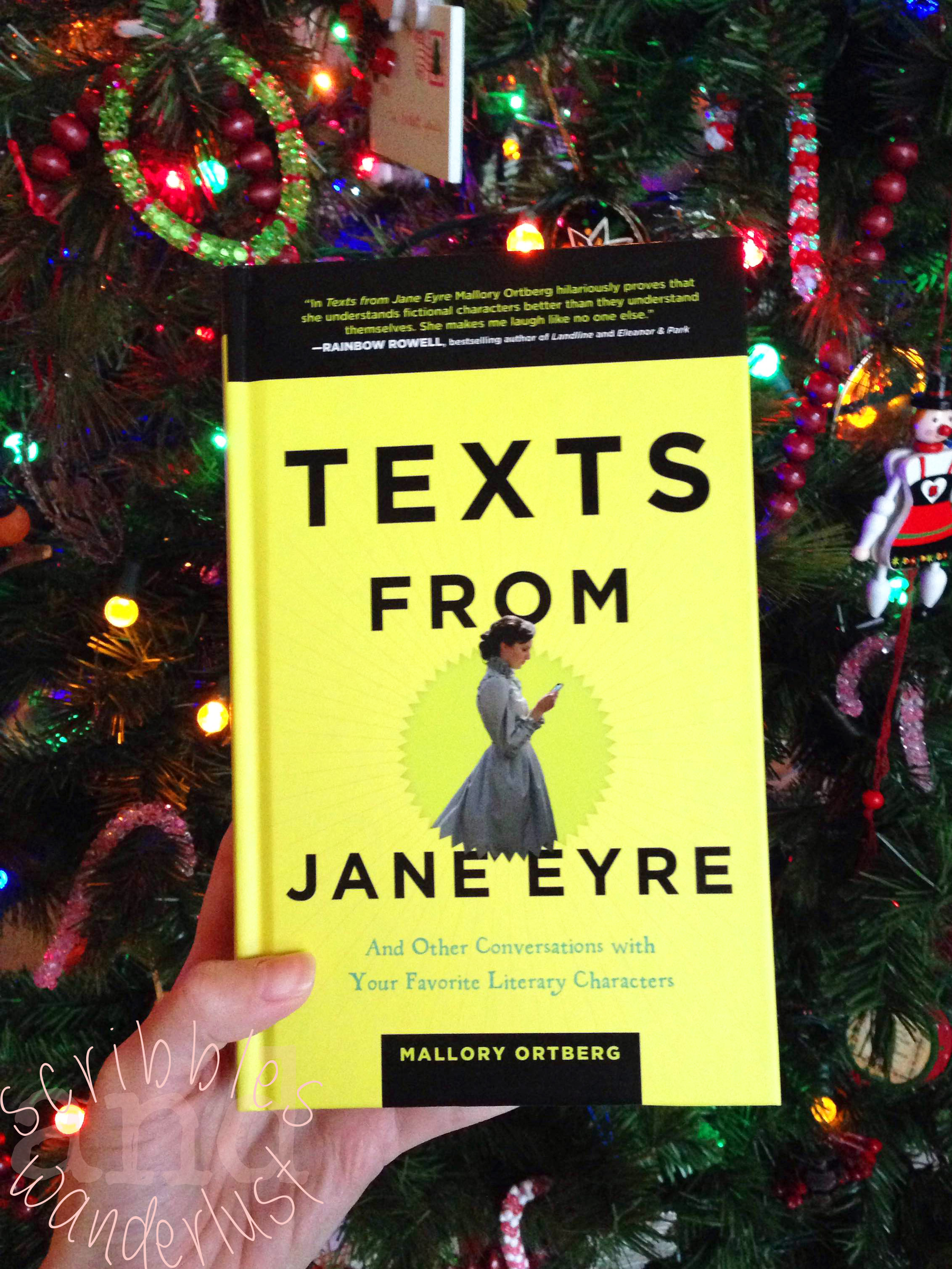 Morgan, Lindsey, and Stina received . . . little vials with a slightly burnt scroll that said Expecto Patronum, to keep the darkness away. I ordered this from allthingsharry on Etsy. Morgan, Hannah, and Alyssa received . . . Between Shades of Gray, Jackaby, and Love Letters to the Dead, respectively. All purchased with eager enthusiasm at the bookstore. My #TBTBSanta recipient received . . . a sassy bookmark about how books don’t need batteries, cocoa mix and peppermint drops, Cinder, and a necklace from A Series of Unfortunate Events. The necklace was ordered from PaperHeartGallery on Etsy. The book and goodies were purchased at the bookstore.