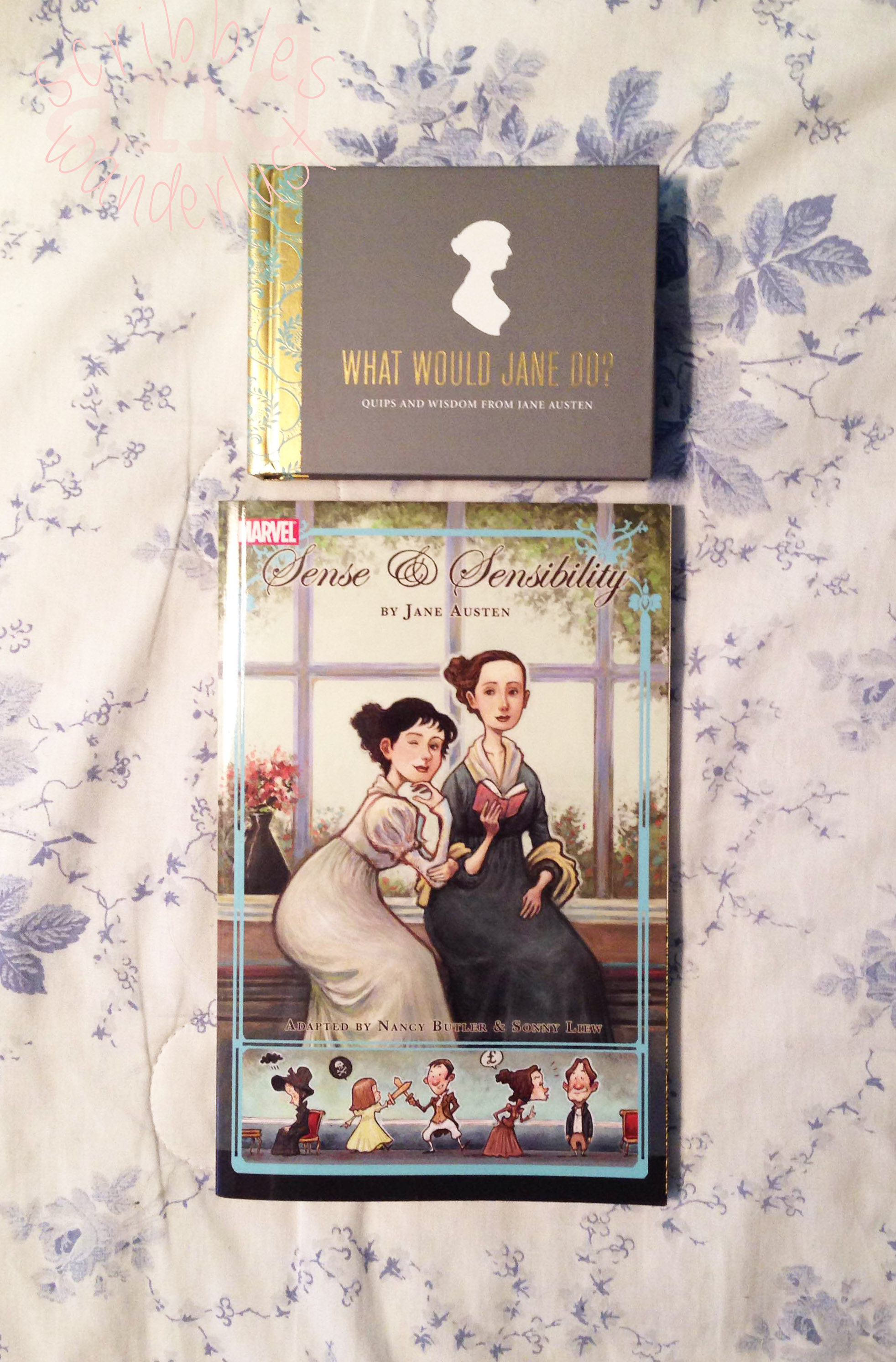 She said to me, “What does one buy a Janeite who already has so many Austen copies?” Well, the graphic novel version, of course! I’m so happy she chose Marvel’s Sense & Sensibility, as Pride & Prejudice is not my go-to Austen novel despite owning multiple copies. The number of graphic novels I’ve read I can count on one hand, and Stina’s always introducing me to new media. So this is really exciting! There’s also the small Austen quote book — and Stina knows how much I love quotes.